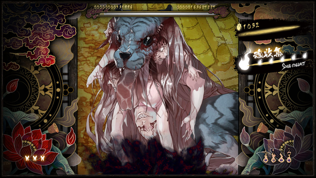 Before we cover the elephant in the room about “Partial Nudity” in the game, we have to say that Shikhondo – Soul Eater is a great shooter for SHMUP fans and non-shooter fans.  The game has a very easy approachable style in which even novices’ gamers to shooters can pick up and play the game and enjoy it.  It offers couch co-op so gamers can enjoy the game on the same console, very easy settings to get used to the game, a great soundtrack that fits perfectly for a game like this and a boss rush mode where you can test your skills on taking on a boss.  Also the art direction in the game is just amazing to see in motion.  Now if you have a shooter fan in your gaming family, this will love this game.  There is a lot to do from the boss rush, to easier and harder modes, arcade mode and online leaderboards. Shikhondo – Soul Eater is a great game now that being said let’s address the “Partial Nudity” that is in the game.  This was a debate in our office for a couple of day, in which it delayed the posting of this review.  Camille our senior blogger/game reviewer felt that the game partial nudity was a little too much and felt that the game T – For Teen rating was just, where I felt that the game should have got a E10 – Everyone 10 and Up rating.  We have attached some screen shots of the game questionable content and as that you be the judge for yourself.  Overall the game is a great beginner shooter that offers a lot for veteran shooter, but again parents please use caution when allowing younger children play the game.  In our special needs game testing, we did not run into any issues with the game visuals, audio, or even controls.  All our older special needs game testers loved the game and the co-op feature was a blast for our gamers. Again, we recommend that it is best for you to test the game for yourself and see if this is a good fit for your digital library.